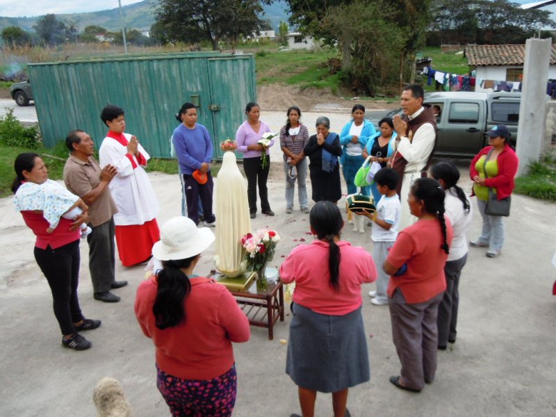 La imagen peregrina del Inmaculado Corazón de María recorrió las calles de un barrio del valle de Tumbaco al este de Quito. Los Heraldos del Evangelio prestaron su ayuda a catequistas de la parroquia para realizar una misión de casa en casa promoviendo la fe e incentivando la devoción a la Madre de Dios a través de la oración.