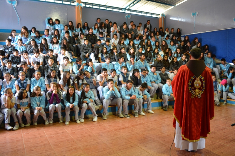 El padre Marlon Jiménez E.P. celebró una Eucaristía para los alumnos del colegio Ausubel en Cuenca. El Heraldo Sacerdote durante la homilía animó a los jóvenes a que crezcan en la devoción a la Santísima Virgen y en especial al rezo del santo rosario.