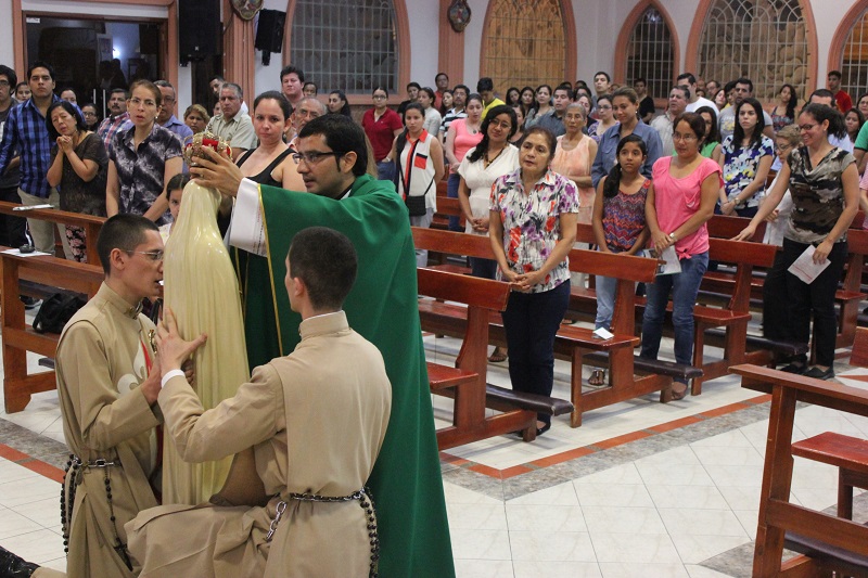 La Imagen peregrina del Inmaculado Corazón de María visitó la parroquia de “La Santísima Trinidad” en la ciudad de Latacunga, ubicada a una hora al sur de Quito. Los Caballeros de la Virgen animaron la liturgia durante las Eucaristías. Los fieles y devotos manifestaron su entusiasmo con el rezo del rosario y cantos durante las […]